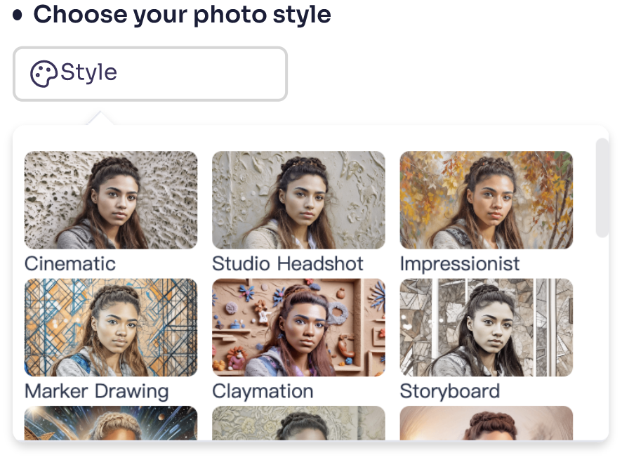 Wählen Sie nun aus den angebotenen KI Kiss Fotostilen aus. Ob Studioaufnahme oder futuristisches Sci-Fi-Kussporträt – mit Vidqu AI erstellen Sie perfekte Kussbilder ganz einfach und in Sekundenschnelle.